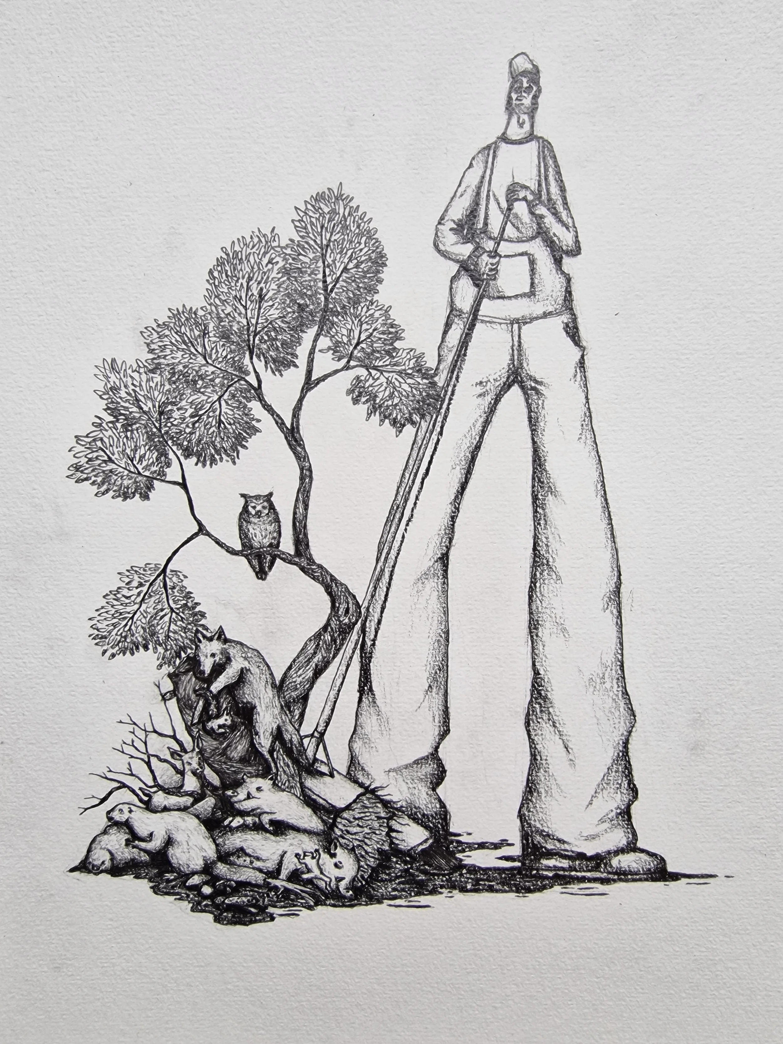 Illustratieve bijdrage aan affiche voor het debat "Natuur, waardeloos?" vanuit Natuurpunt Limburg, Limburgs landschap en de Limburgse Milieukoepel